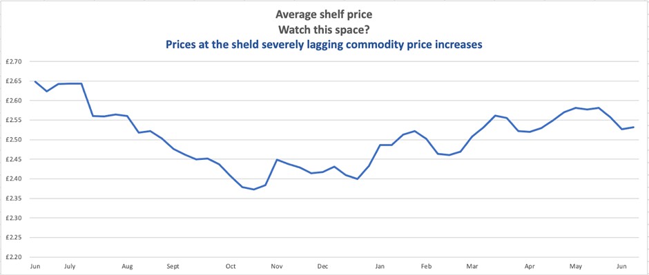 We often see manufacturers waiting for their peers to lead price increases for fear of losing volume and share short term. At the current time there are no obvious leaders of price increases – suppliers or retailers.